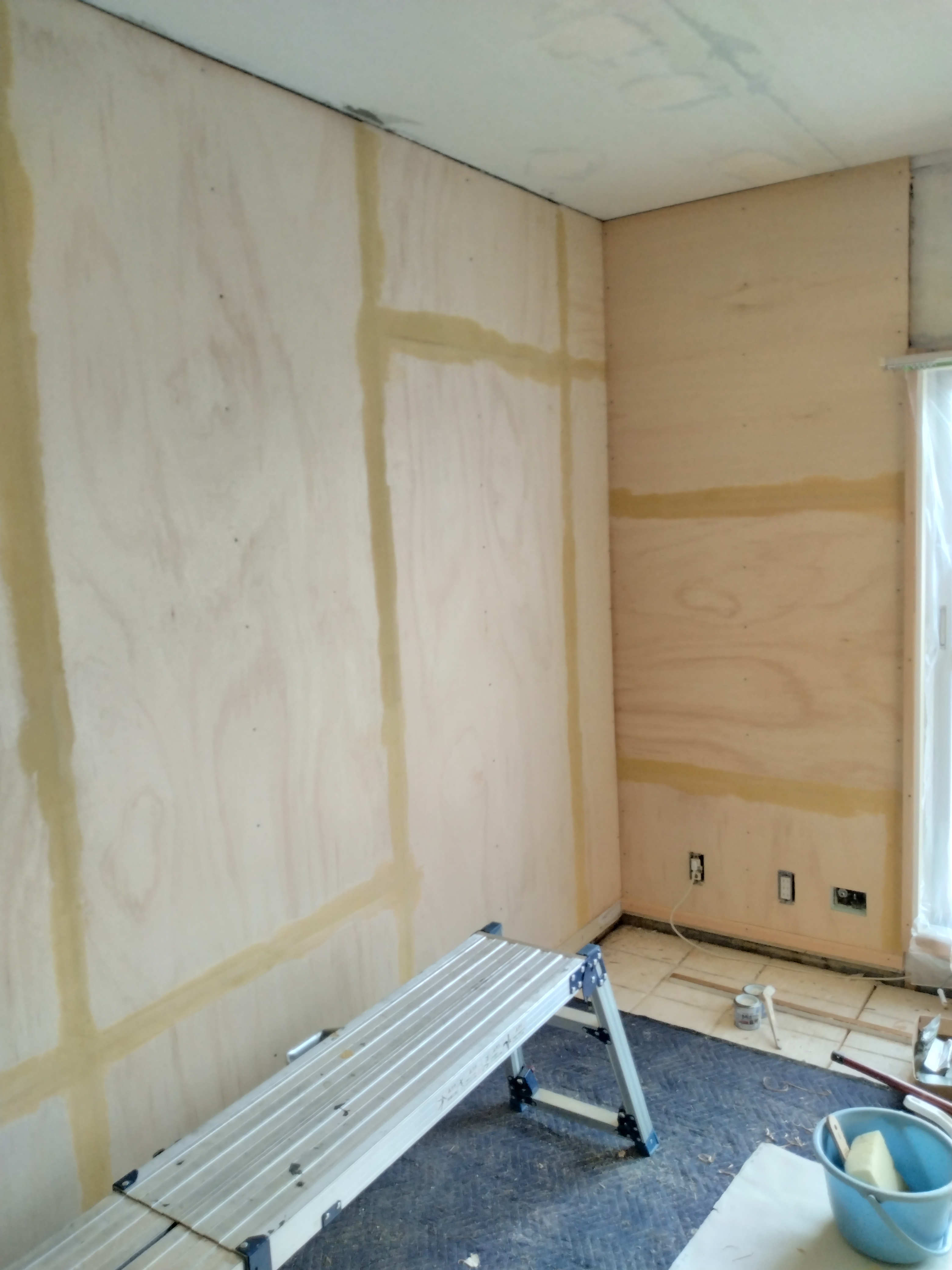 2015年11月 壁改修工事(ベニヤ張り・クロス張り)・木部灰汁洗い・障子張替え